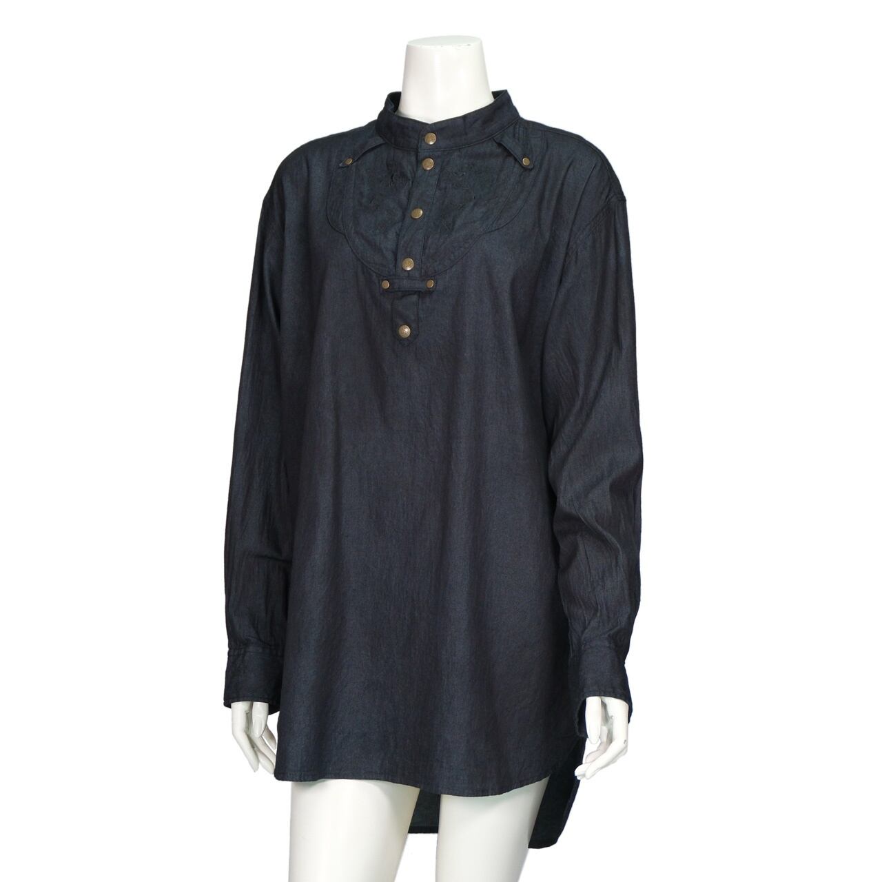 龍の刺繍をあしらったヘンリーネックシャツ。