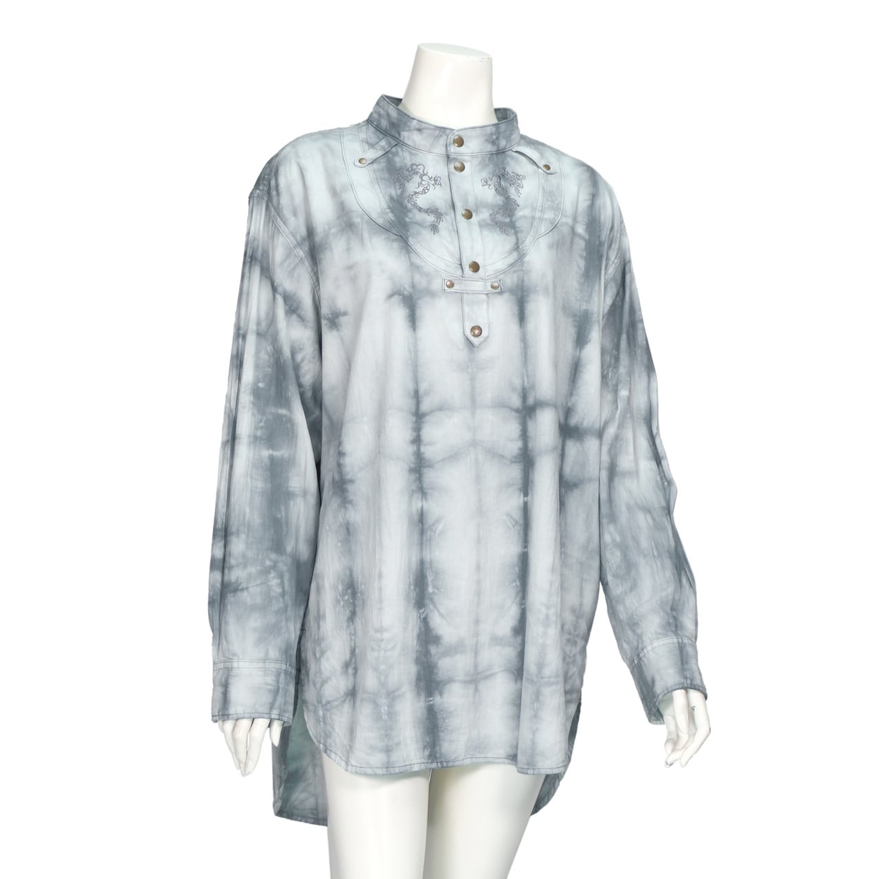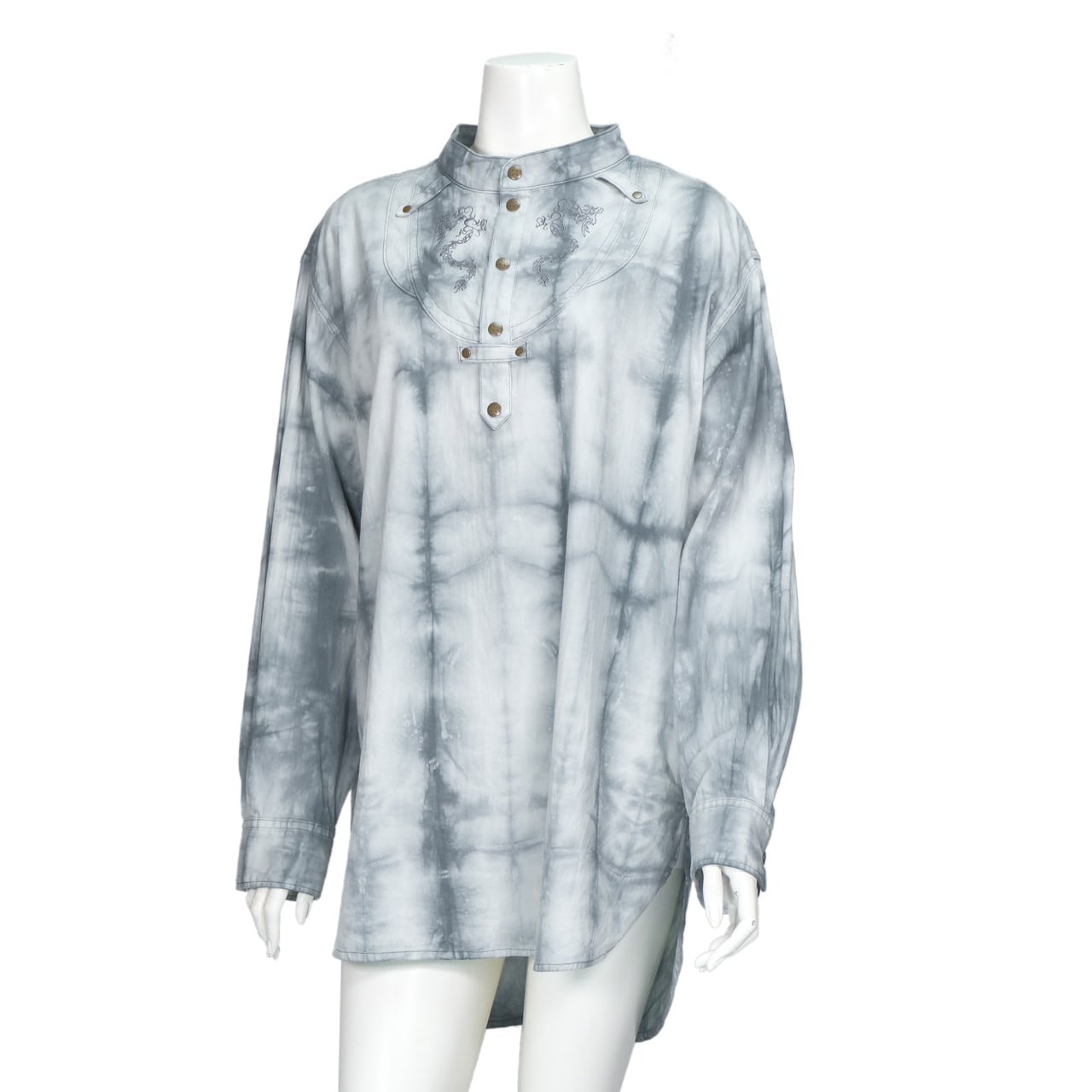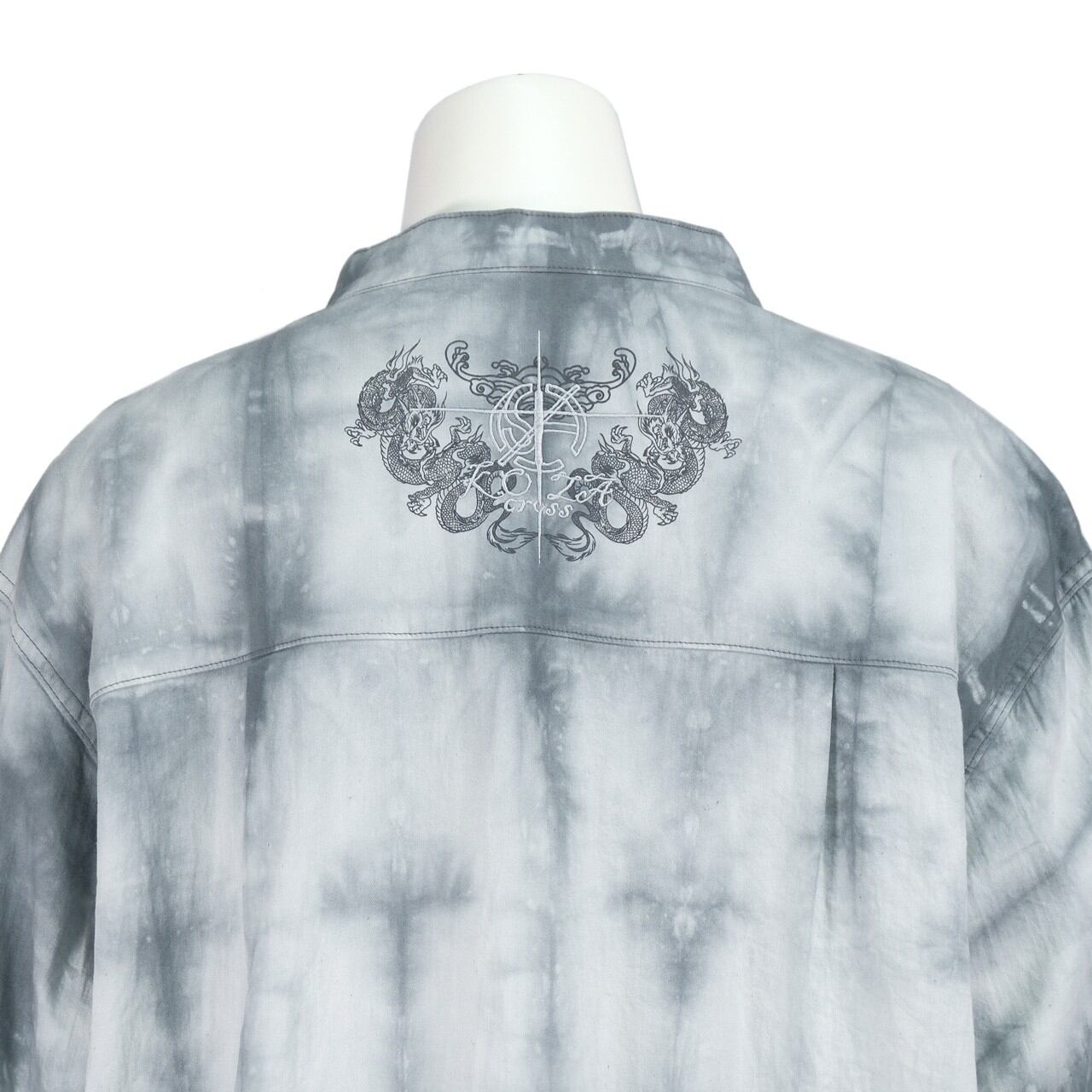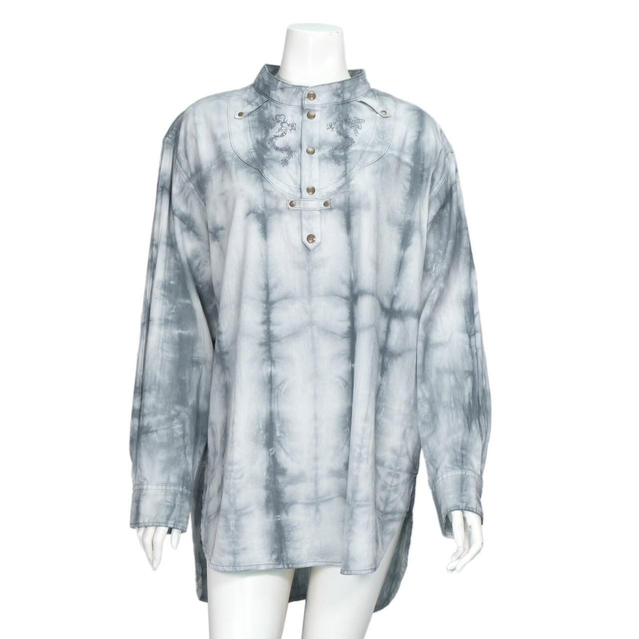 龍の刺繍をあしらったヘンリーネックシャツ。